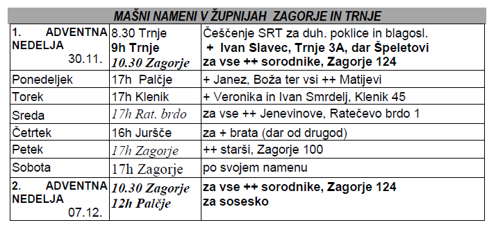 6. 12., ob 16:30 v cerkvi v Trnju. Lepo vabljeni!